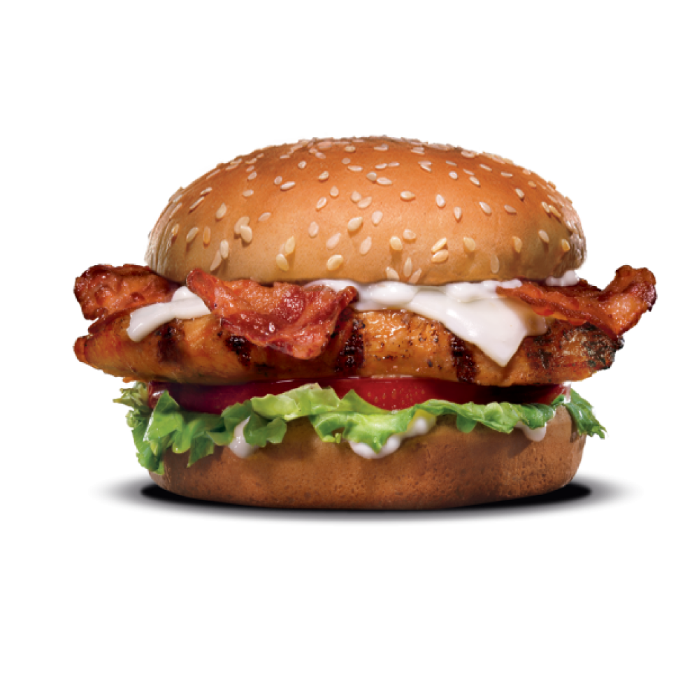 Carl's Jr.'s Charbroiled Chicken Club Sandwich features a grilled chicken breast with bacon, Swiss cheese, lettuce, tomato, and mayo on a wheat bun. It's the premium chicken option for anyone who wants something grilled and loaded — higher protein than most chicken sandwiches and one of the more balanced items on the menu.