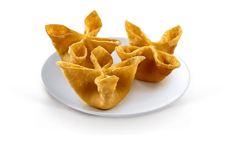 Panda Express's Cream Cheese Rangoons are crispy fried wontons filled with cream cheese and served with sweet and sour sauce. A guilty pleasure appetizer that has nothing to do with Chinese food but nobody cares, they're one of Panda's most addictive menu items and a must-add to any plate for people who want something crunchy and indulgent on the side.